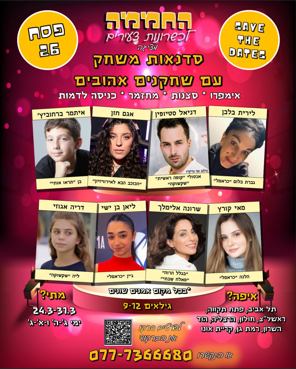 סדנאות משחק ואומנית הבמה עם שחקנים אהובים