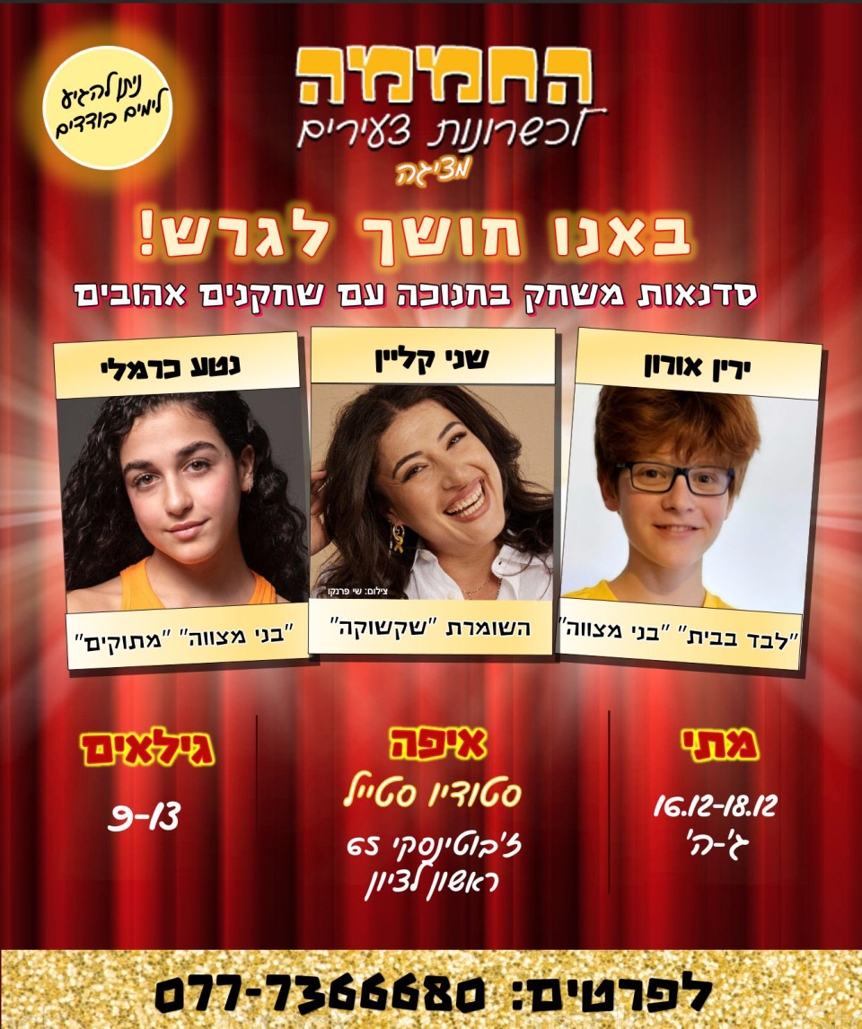 סדנאות משחק עם שחקנים אורחים | חנוכה 25 | 16.12-18?12 | ימים ג-ה 09:30-13:30 | סטודיו סטייל | זבוטח=ינסקי 65 | ראשל"צ
