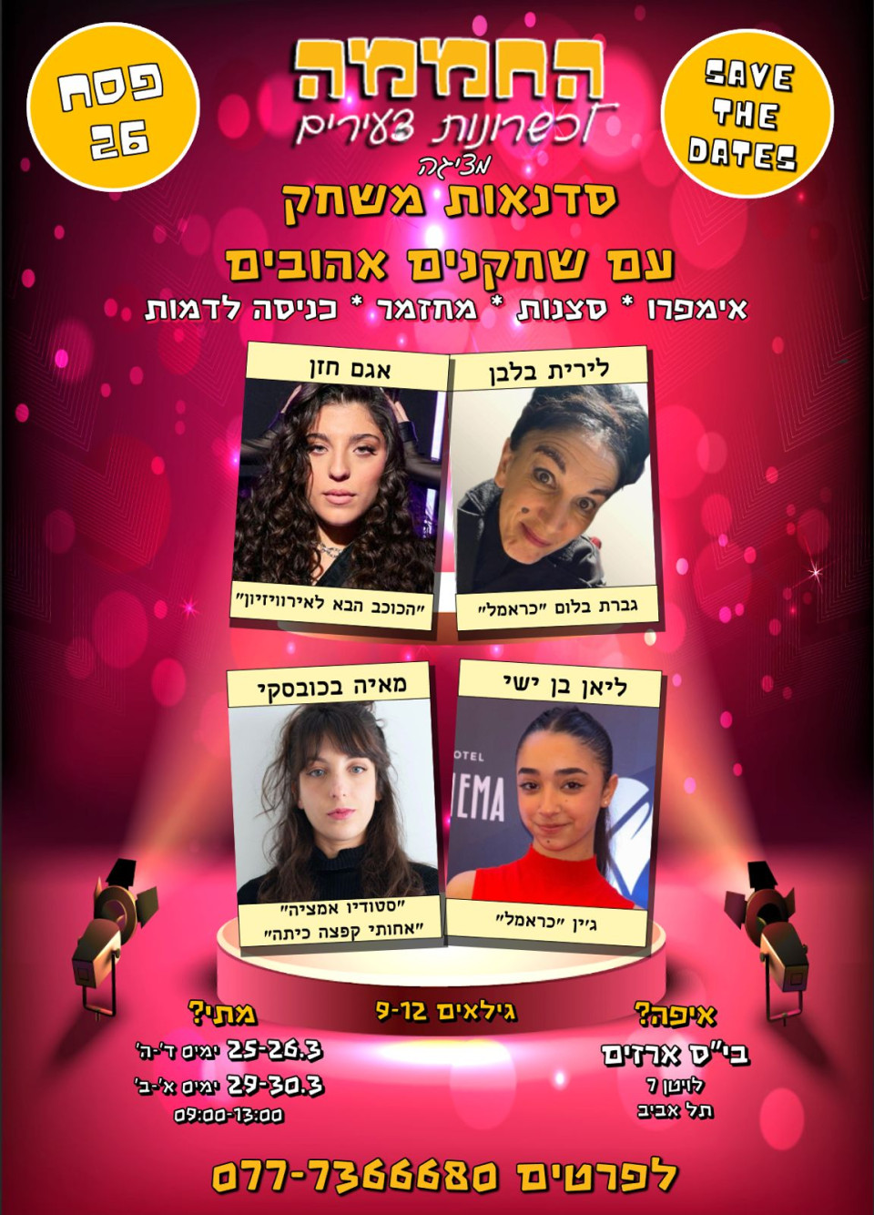 25.3-30.3 | 4 ימים של סדנאות משחק במחיר מיוחד ברמת אביב