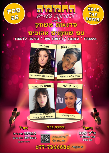 25.3-30.3 סדנאות משחק בצהלה. ויסבורג 17. סדנאות משחק עם שחקנים אורחים
