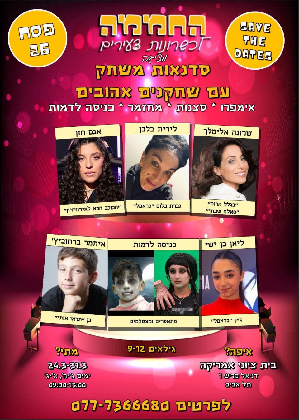 5 ימים | 09:30-13:30 | 25.3-31.3 | לא כולל שישי שבת | בית ציוני אמריקה |